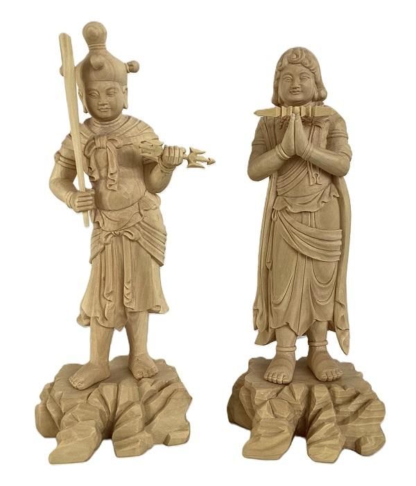 ホーム明王の部童子矜羯羅・制多迦童子(八大童子型) ツゲ製 総高15cm 身丈3.7寸