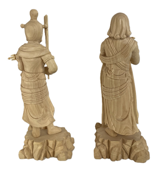 ▼ 矜羯羅・制多迦童子(八大童子型) ツゲ製 総高15cm 身丈3.7寸